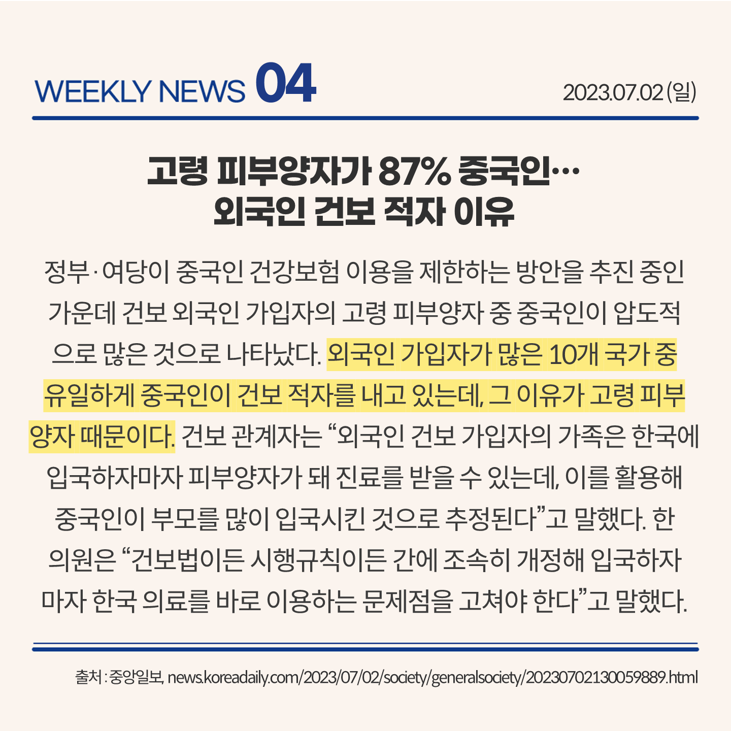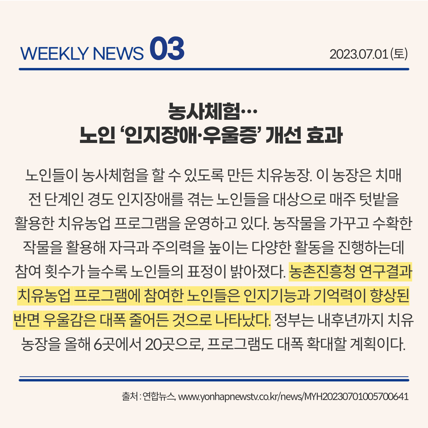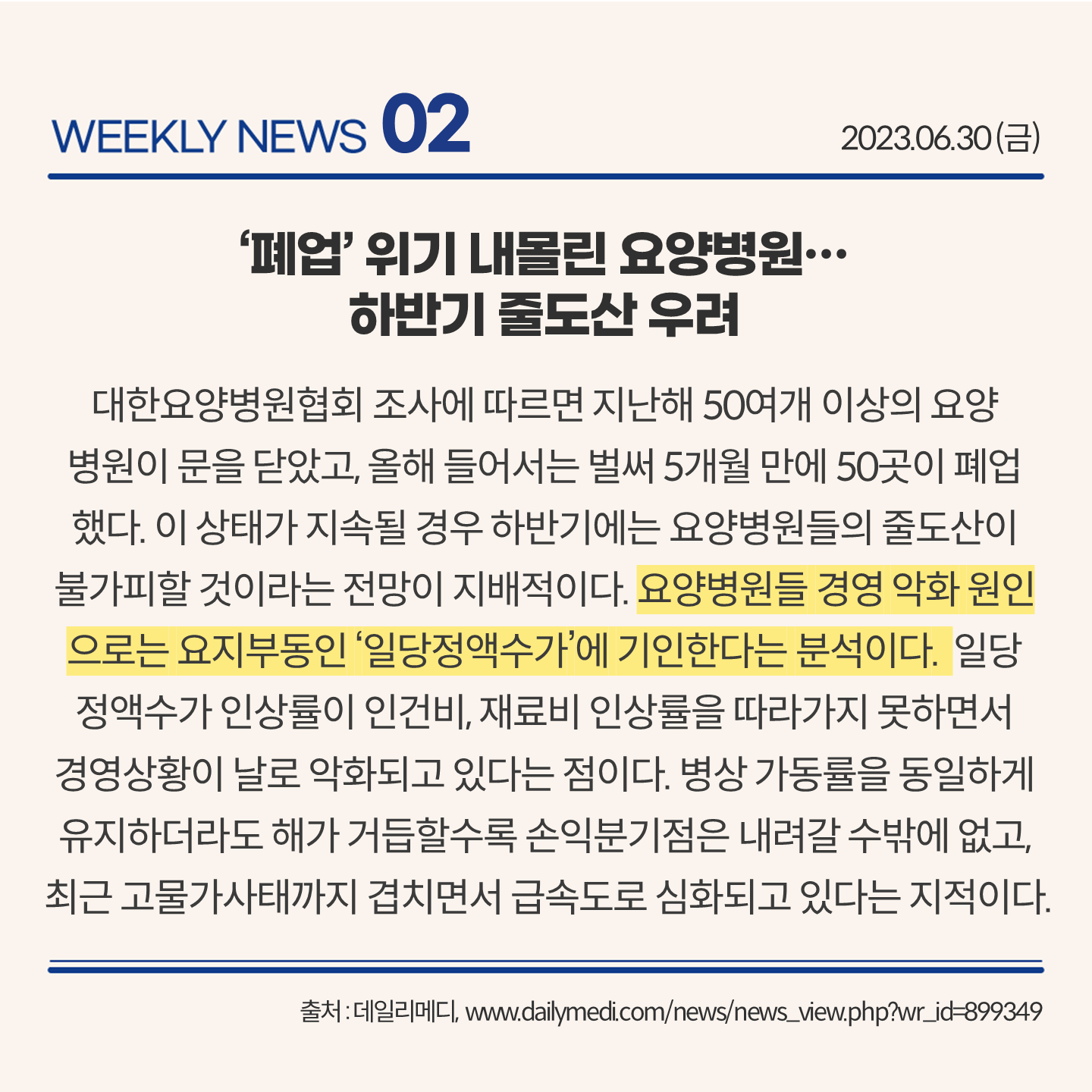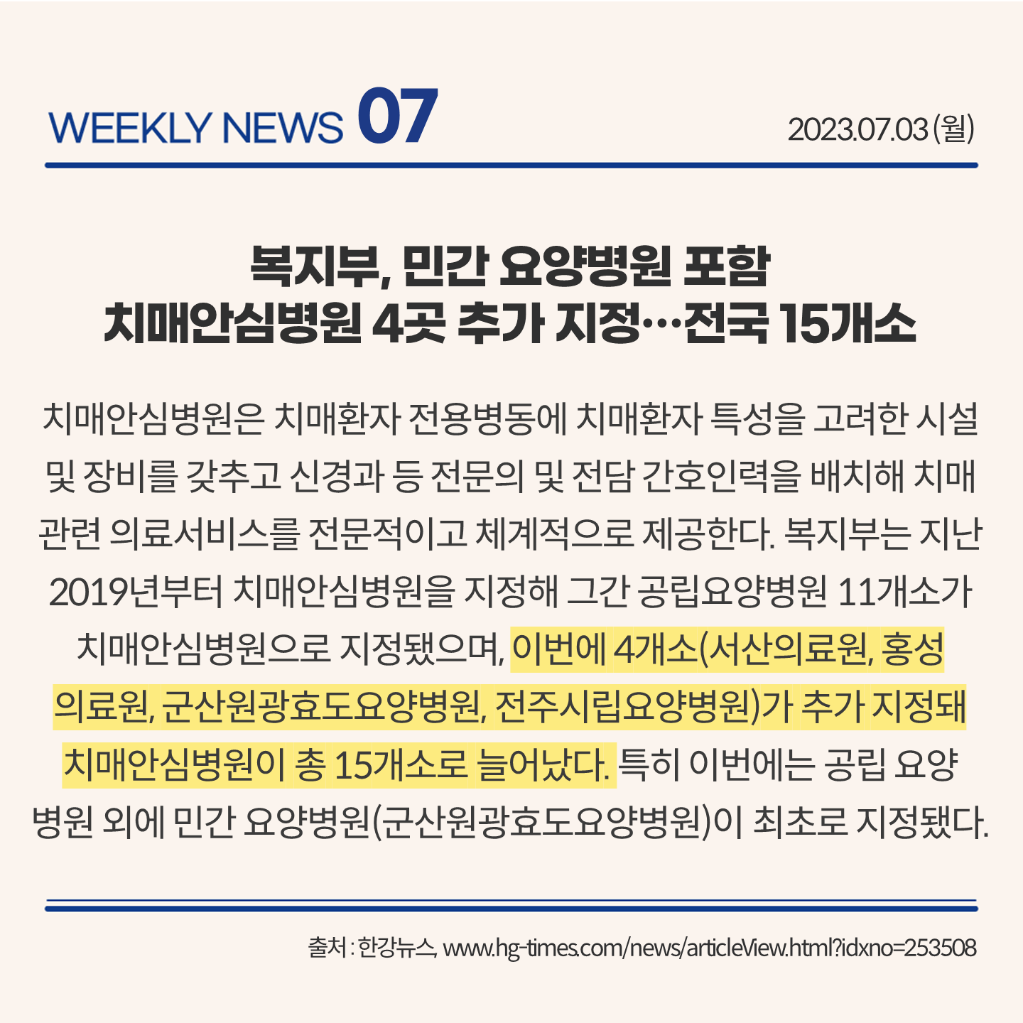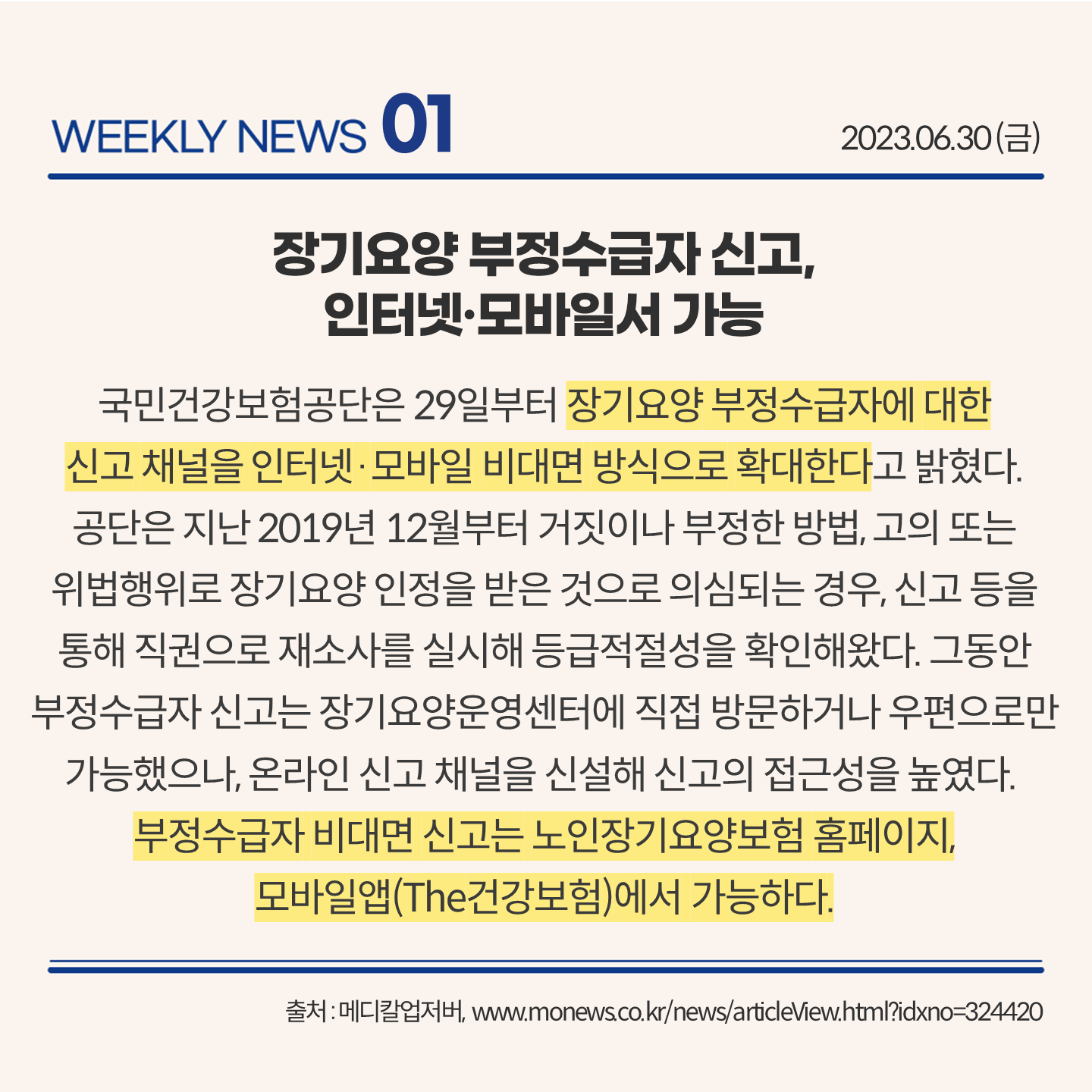 2023년 7월 1주차 WEEKLY NEWS 또가와 알아보는 요양 뉴스