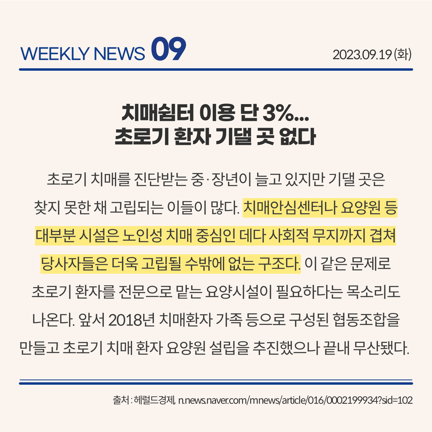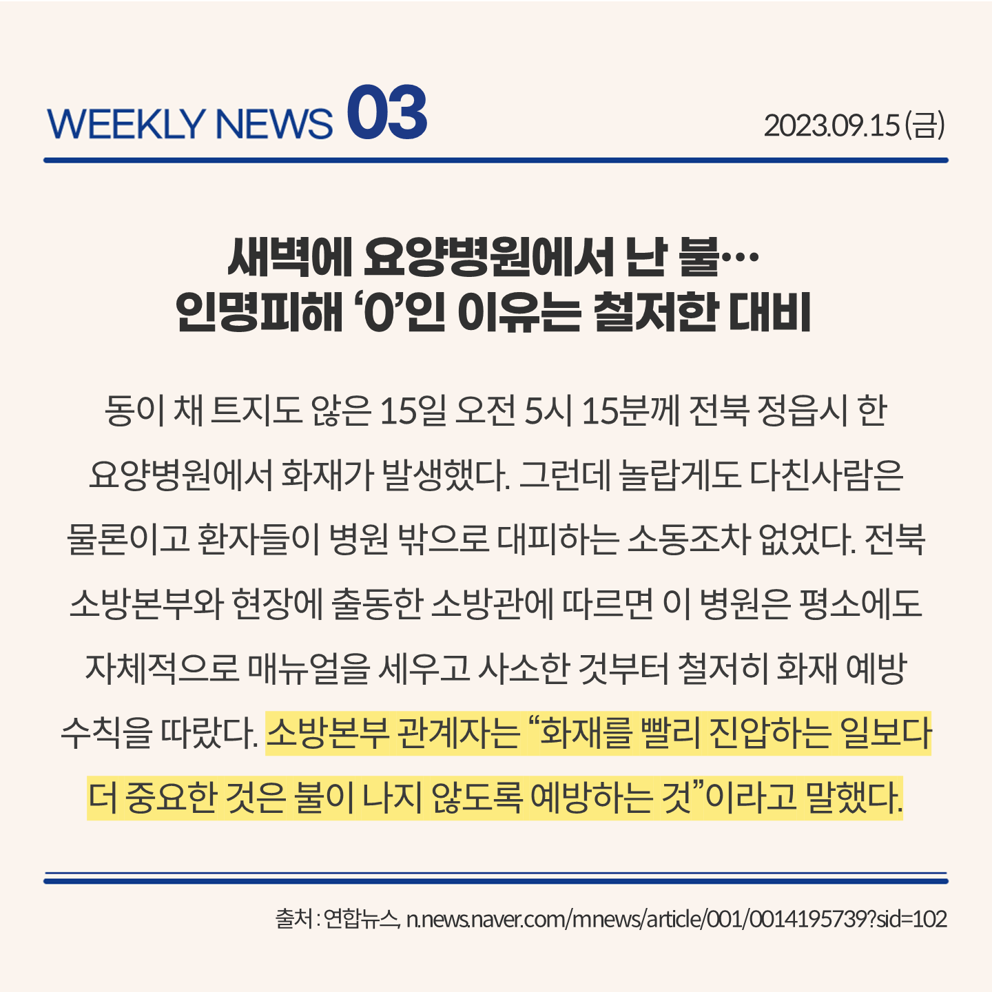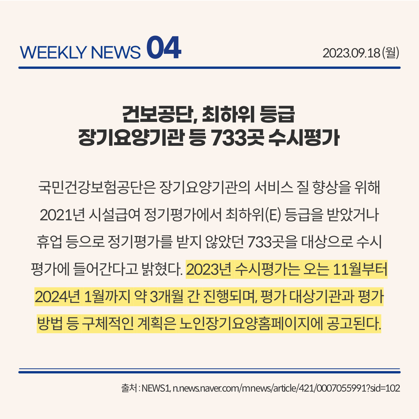 2023년 9월 3주차 WEEKLY NEWS 또가와 알아보는 요양 뉴스