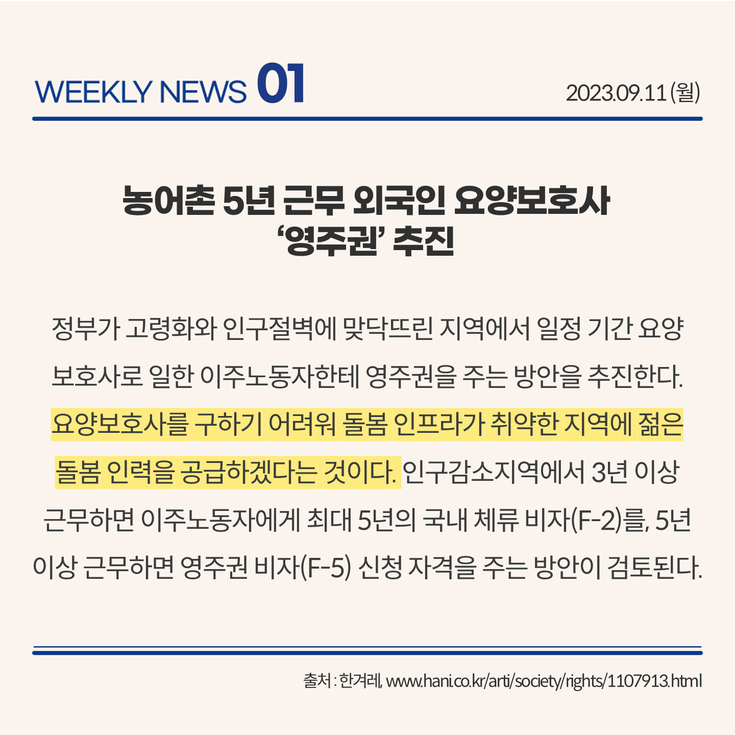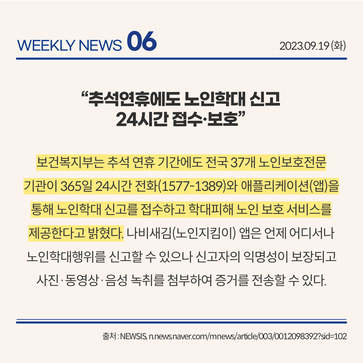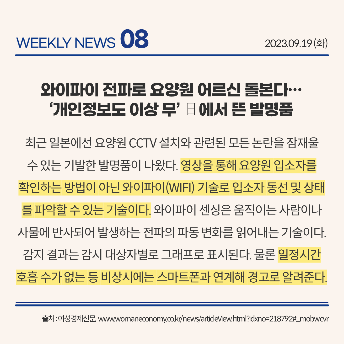 2023년 9월 3주차 WEEKLY NEWS 또가와 알아보는 요양 뉴스