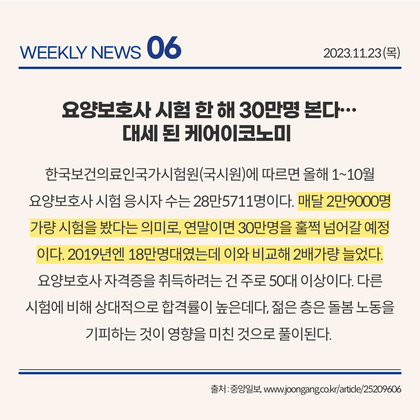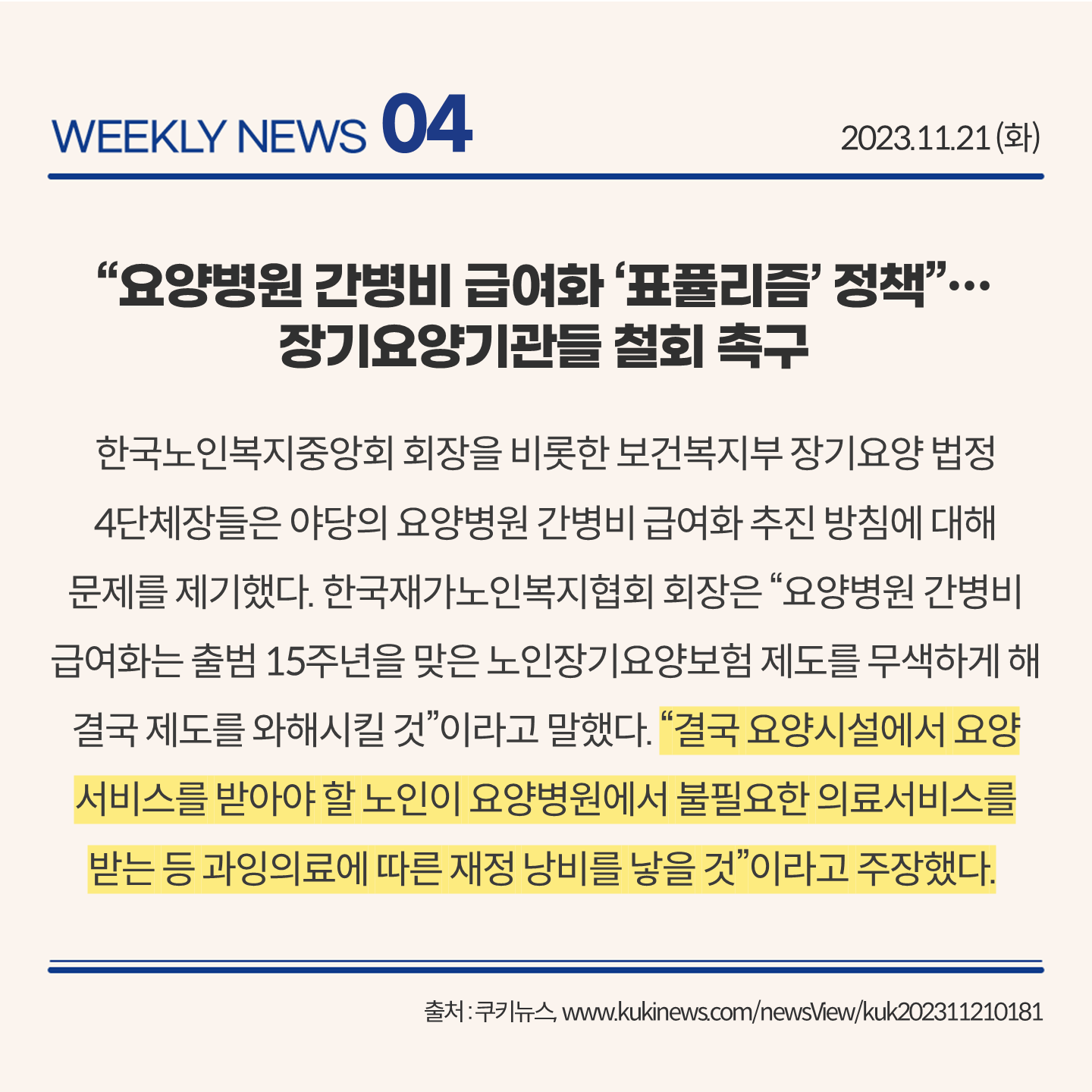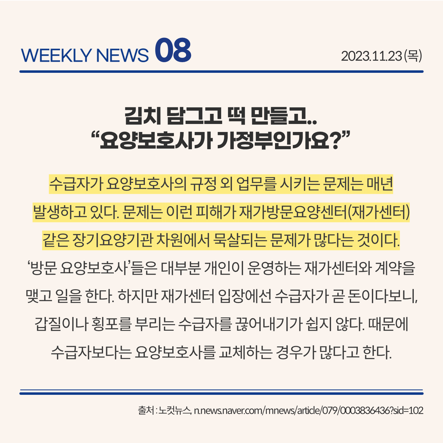 2023년 11월 3주차 WEEKLY NEWS 또가와 알아보는 요양 뉴스
