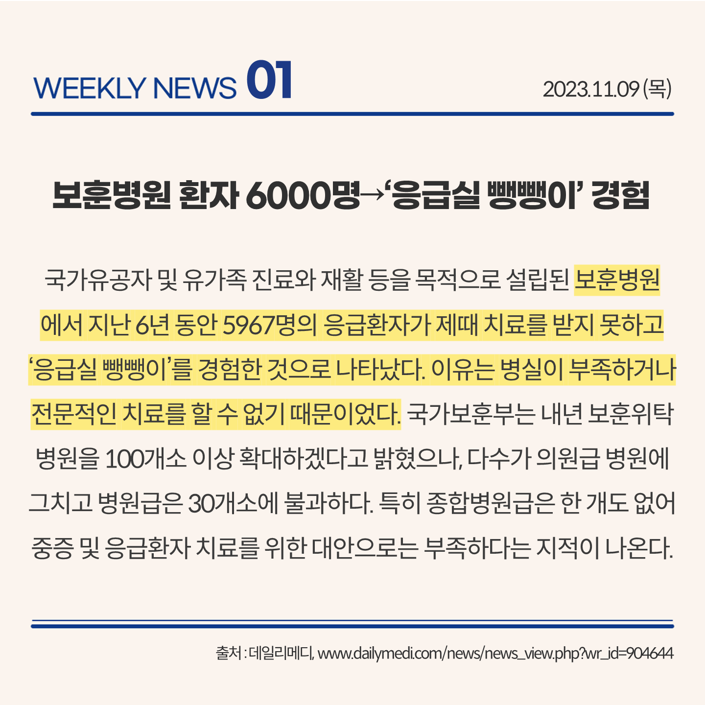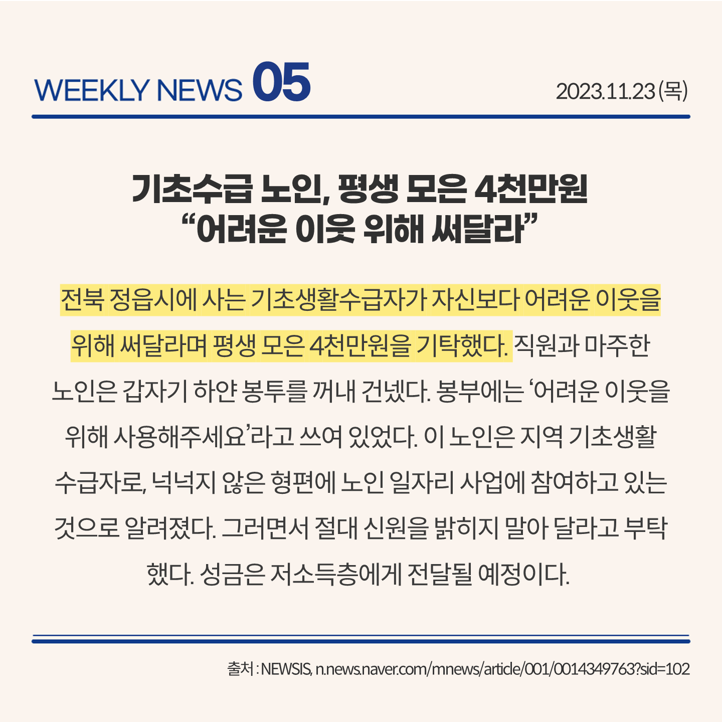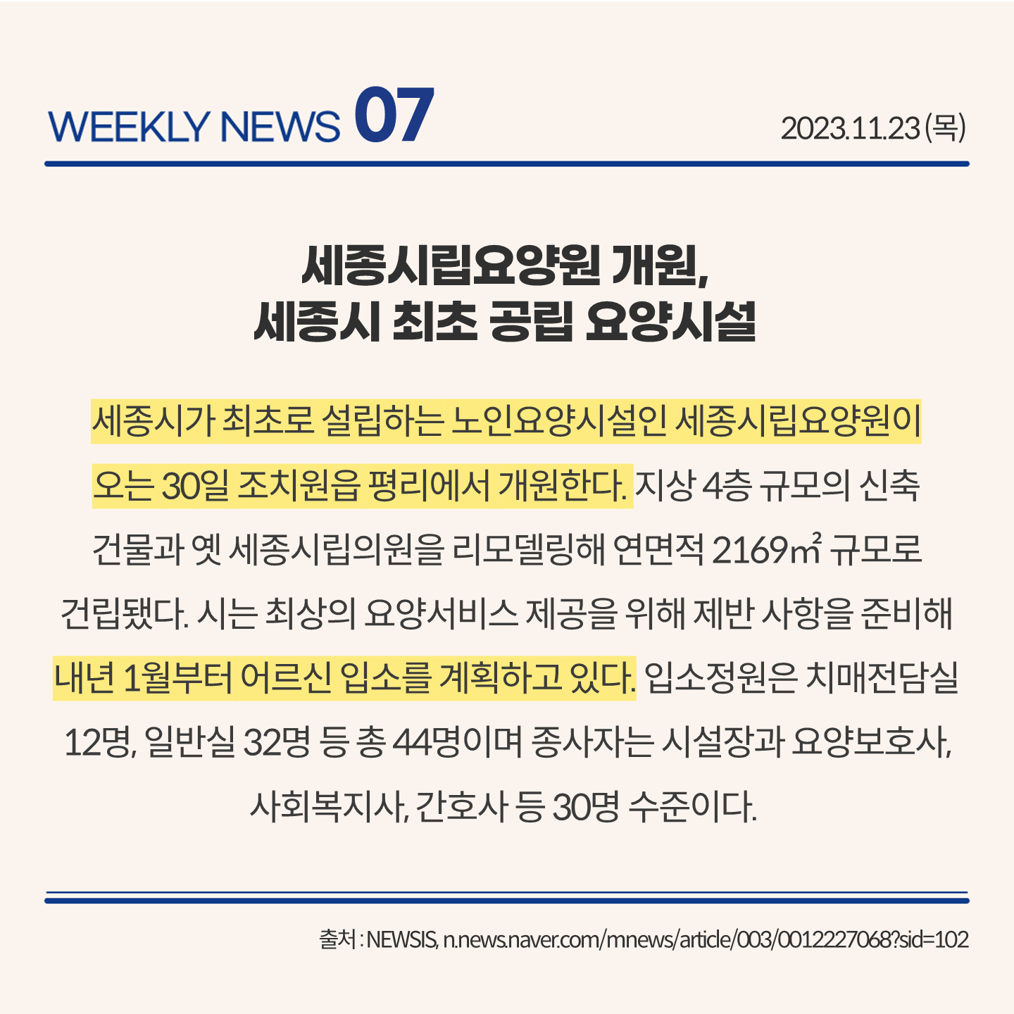 2023년 11월 3주차 WEEKLY NEWS 또가와 알아보는 요양 뉴스