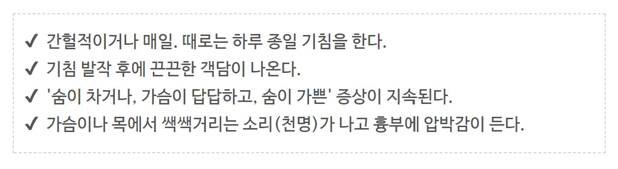 숨을 내쉴 때 기도가 너무 좁아져 숨을 잘 내쉴 수 없고,