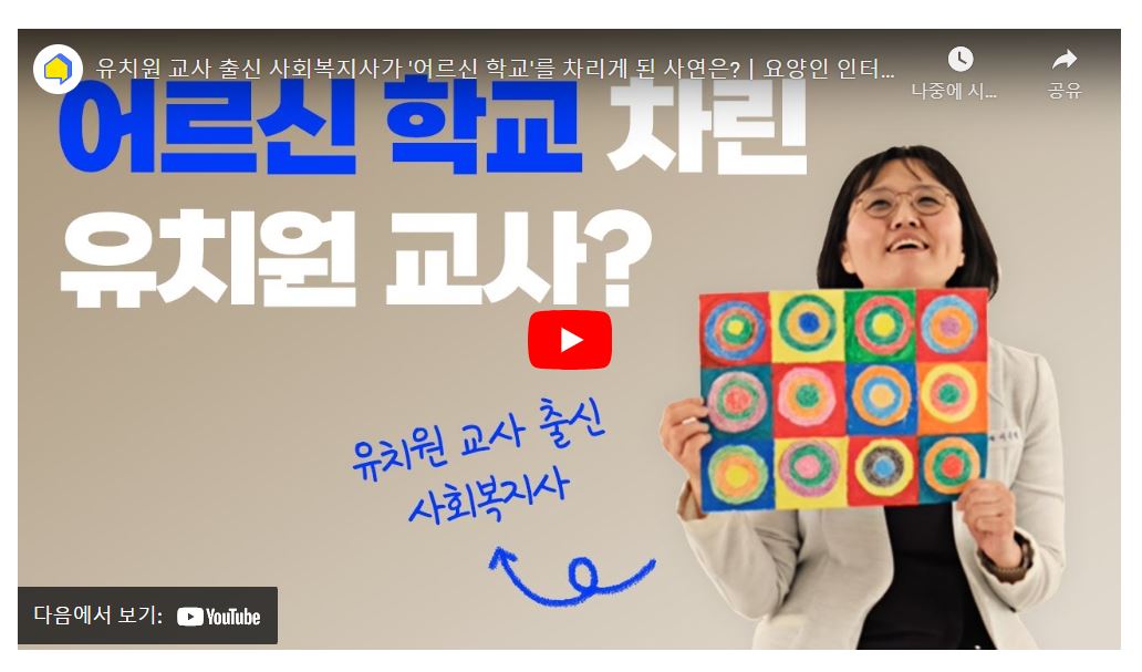 [또가 유튜브] 또하나의가족 요양인 인터뷰 #유치원교사였던 #사회복지사가 #어르신학교를 차린 사연은?