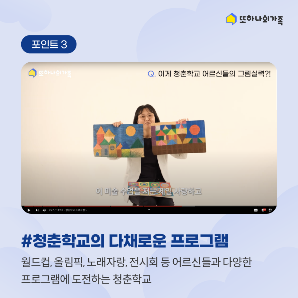 월드컵, 올림픽, 노래자랑, 전시회 등 어르신들과 다양한 프로그램에 도전하는 청춘학교