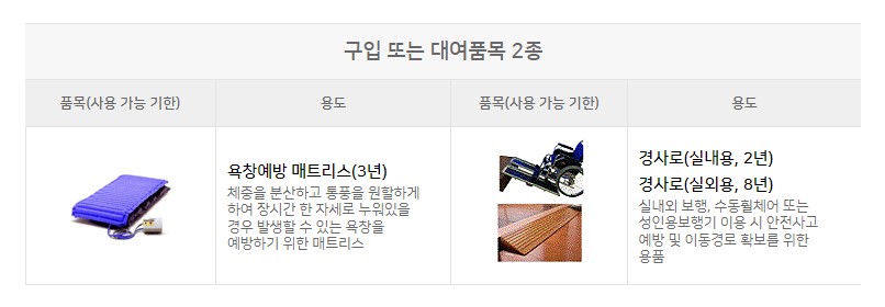 『구입 또는 대여품목 2종』에 대해 수급자가 구입 또는 대여방식 중 선택해서 사용이 가능해요.