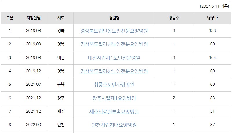 보건복지부 지정 전국 '치매안심병원' 정보