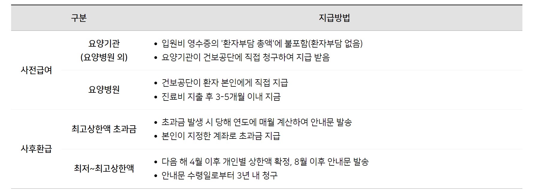 환자 본인이 요양기관에 상한액 초과금을 포함한 진료비 전액을 납부한 후,
