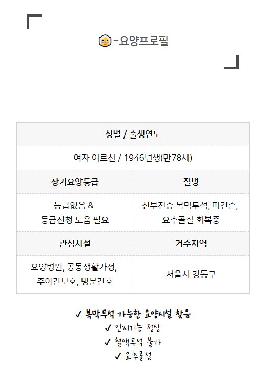 [또가 요양사연] 복막투석이 가능한 요양 시설을 찾는 보호자