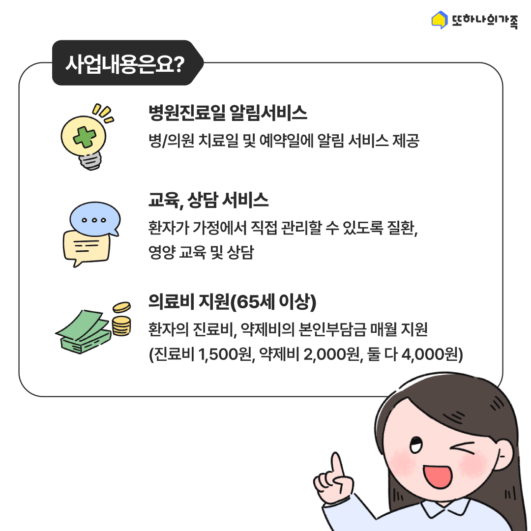 ※ 진료비 1,500원, 약제비 질환별 2,000원 지원(고혈압, 당뇨병 모두 진료 받는 경우는 4,000원 지원)