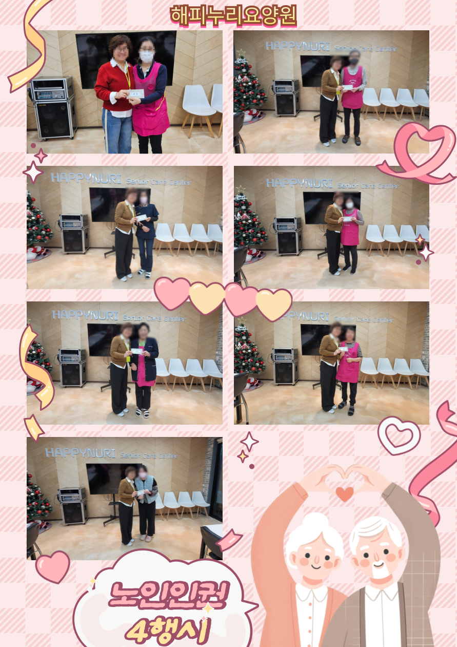 안녕하세요! 행복한 하루를 보내는 어르신들이 계신 곳, 해피누리요양원입니다^^