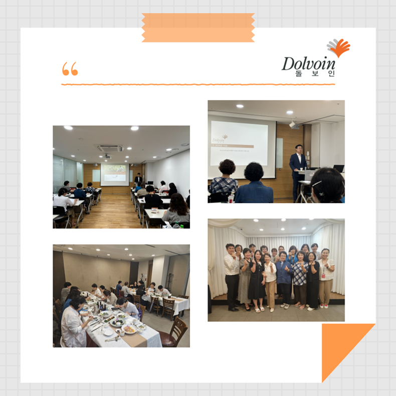 가족과 같은 마음으로 돌보겠다는 슬로건 아래어르신에게는 편안한 노후를, 가족들에게는 효도의 기쁨을, 가정에는 행복을 지켜드리기 위해최선의 노력을 다하여 우리나라 시니어 비즈니스의 대표 브랜드로 자리 매김 하도록 하겠습니다.감사합니다.