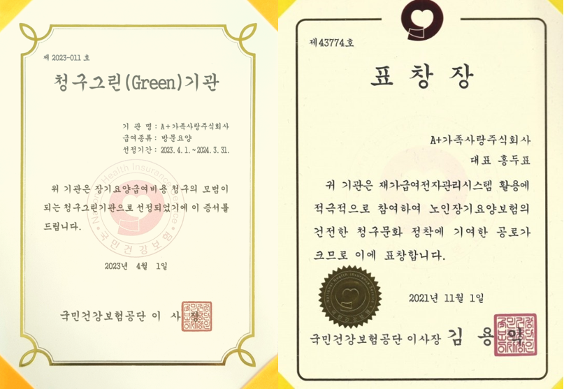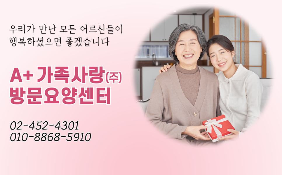 안녕하세요, 'A+가족사랑(주) 방문요양센터'입니다.