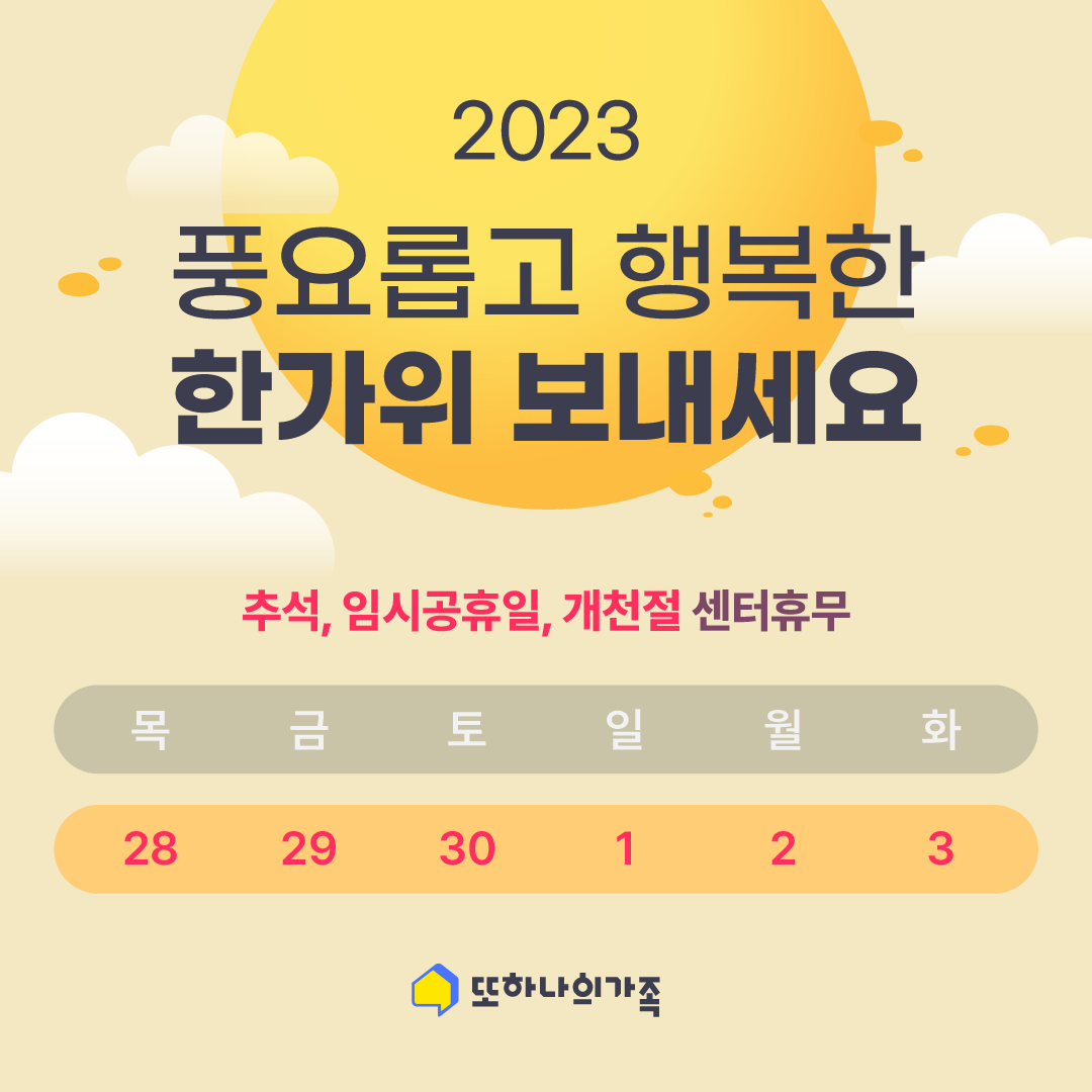 2023년 추석연휴 고객센터 휴무 안내2023.09.26